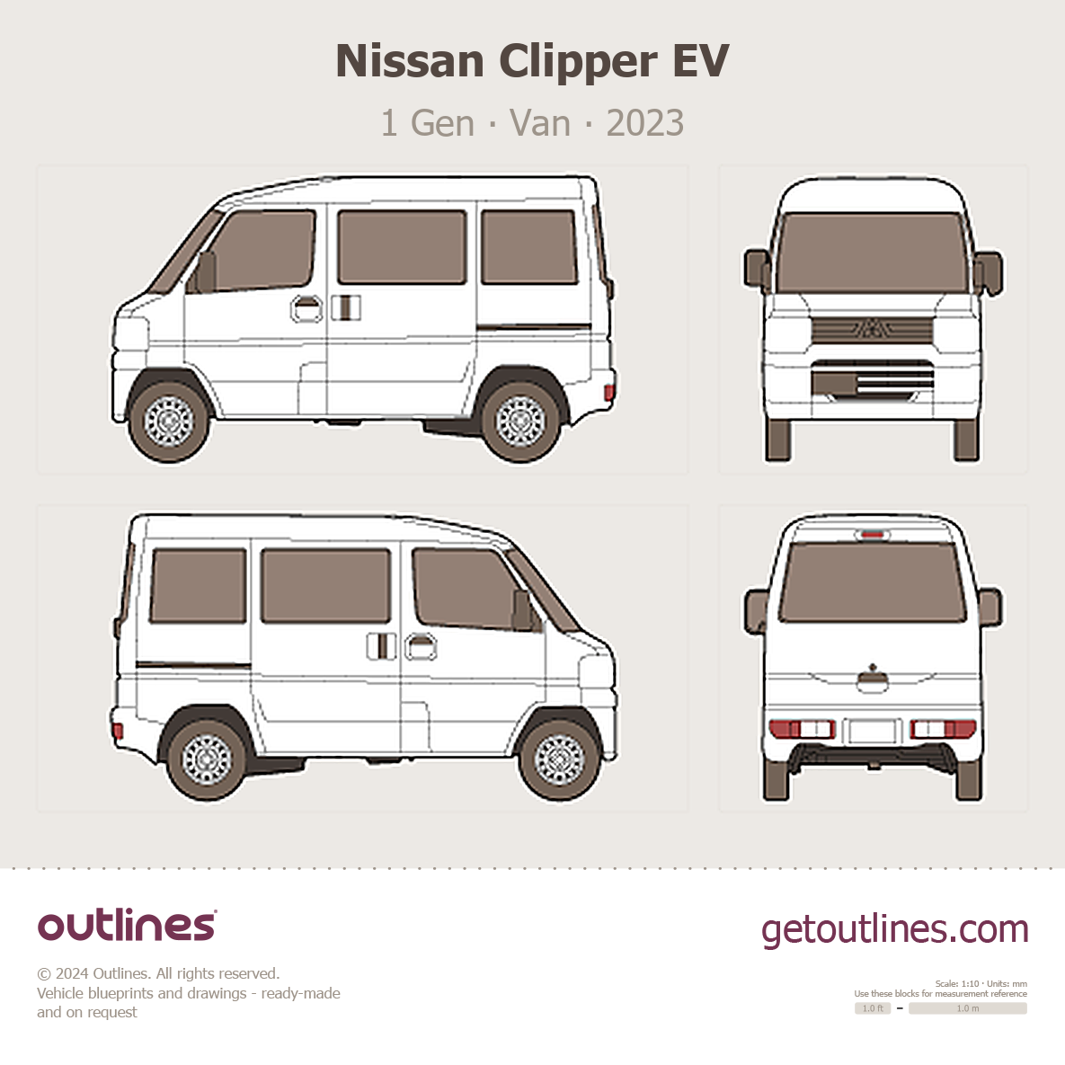 Buy this Nissan Clipper EV 1 Gen blueprint and line drawing in high-quality editable vector file formats. Best for 3D and car wrap design.