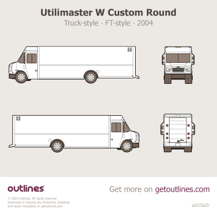 Buy this Freightliner MT55 Step Van ∙ Utilimaster WCR blueprint and line drawing in high-quality editable vector file formats. Best for 3D and car wrap design.