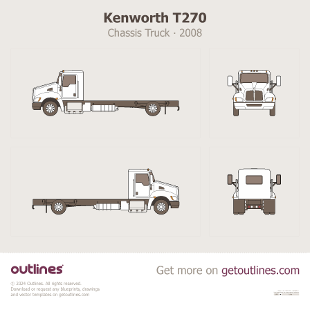 Buy this Kenworth T270 blueprint and line drawing in high-quality editable vector file formats. Best for 3D and car wrap design.