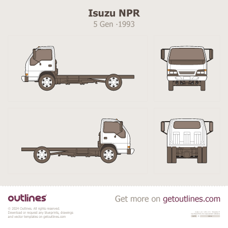 Buy this Isuzu NPR 5 Gen blueprint and line drawing in high-quality editable vector file formats. Best for 3D and car wrap design.