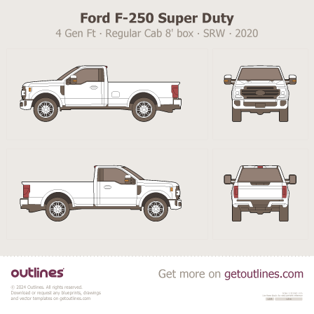 2017 Ford F-250 Super Duty 4 Gen Facelift '20 Regular Cab 8' Box Pickup Truck blueprint