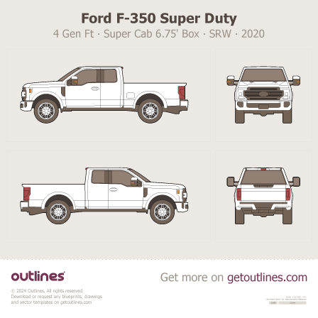 Buy this Ford F-350 Super Duty 4 Gen Facelift '20 blueprint and line drawing in high-quality editable vector file formats. Best for 3D and car wrap design.
