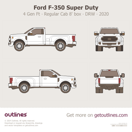 Buy this Ford F-350 Super Duty 4 Gen Facelift '20 blueprint and line drawing in high-quality editable vector file formats. Best for 3D and car wrap design.