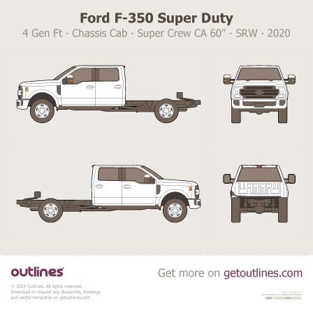 2017 Ford F-350 Super Duty 4 Gen Facelift '20 Chassis Cab ∙ Crew Cab CA 60" ∙ SRW Pickup Truck blueprint