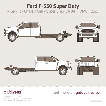 Buy this Ford F-550 Super Duty 4 Gen Facelift '20 blueprint and line drawing in high-quality editable vector file formats. Best for 3D and car wrap design.