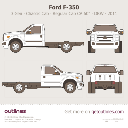 2011 Ford F-350 Super Duty 3 Gen Chassis Cab ∙ Regular Cab CA 60" ∙ DRW Pickup Truck blueprint