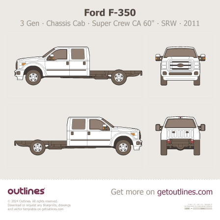 2011 Ford F-350 Super Duty 3 Gen Chassis Cab ∙ Crew Cab CA 60" ∙ SRW Pickup Truck blueprint