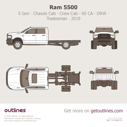 Buy this Ram 5500 5 Gen blueprint and line drawing in high-quality editable vector file formats. Best for 3D and car wrap design.