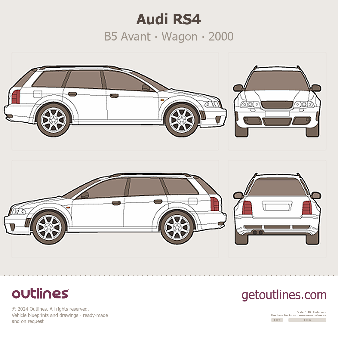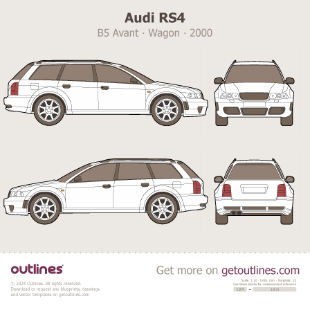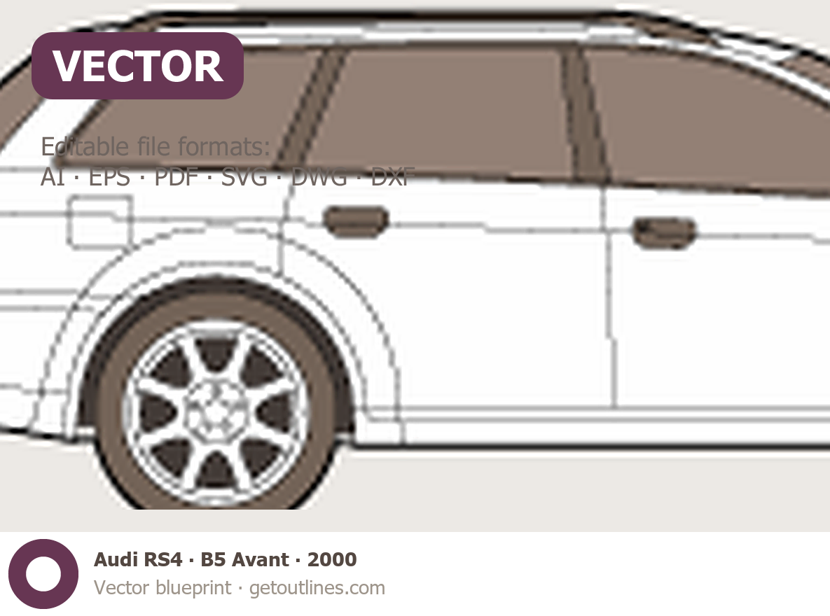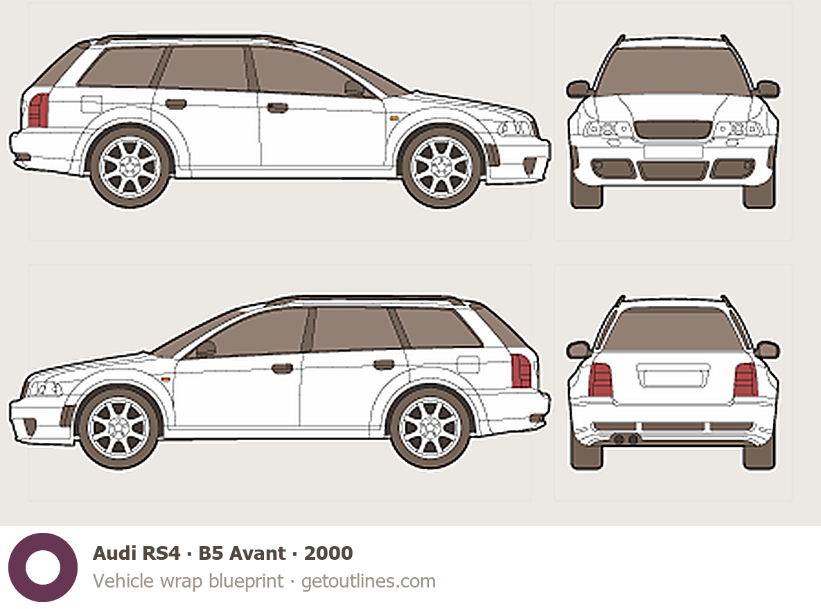 Buy this Audi RS4 B5 Avant blueprint and line drawing in high-quality editable vector file formats. Best for 3D and car wrap design.