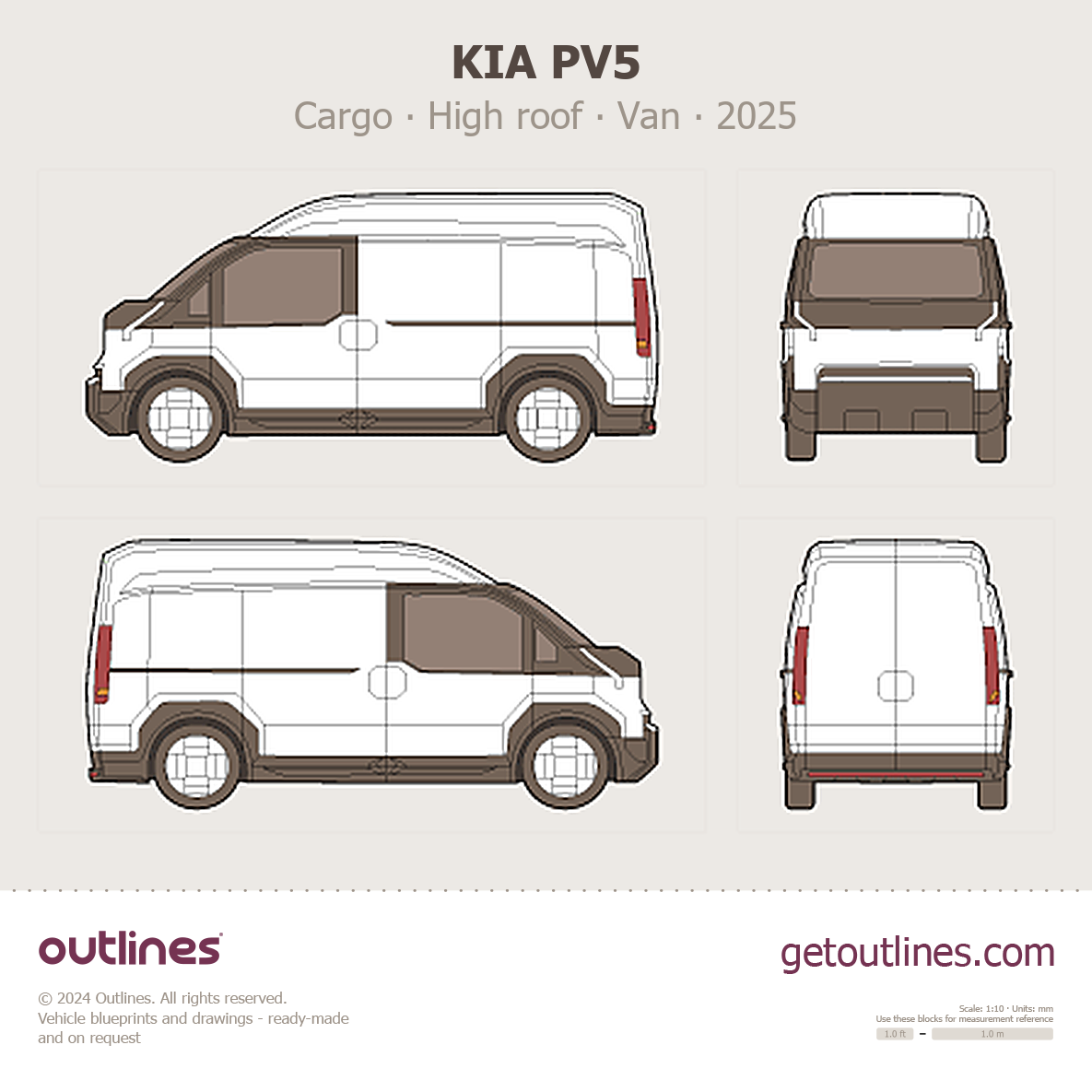 Buy this KIA PV5 blueprint and line drawing in high-quality editable vector file formats. Best for 3D and car wrap design.