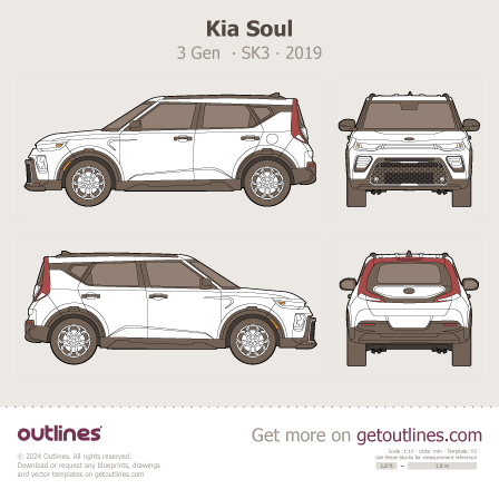 Buy this KIA Soul 3 Gen ∙ SK3 blueprint and line drawing in high-quality editable vector file formats. Best for 3D and car wrap design.