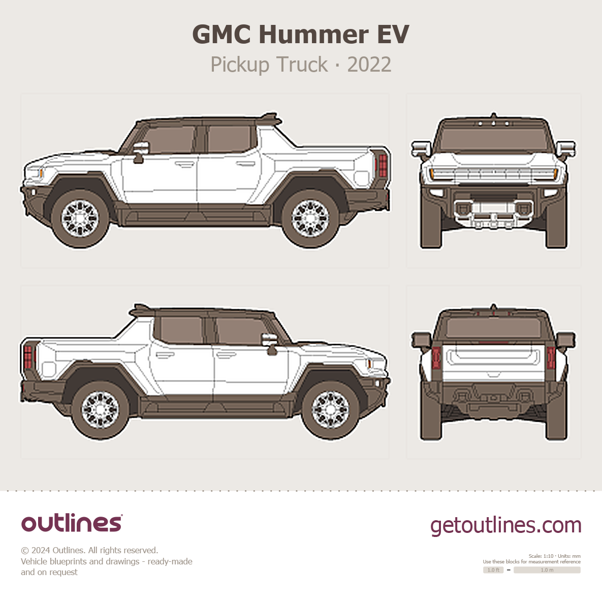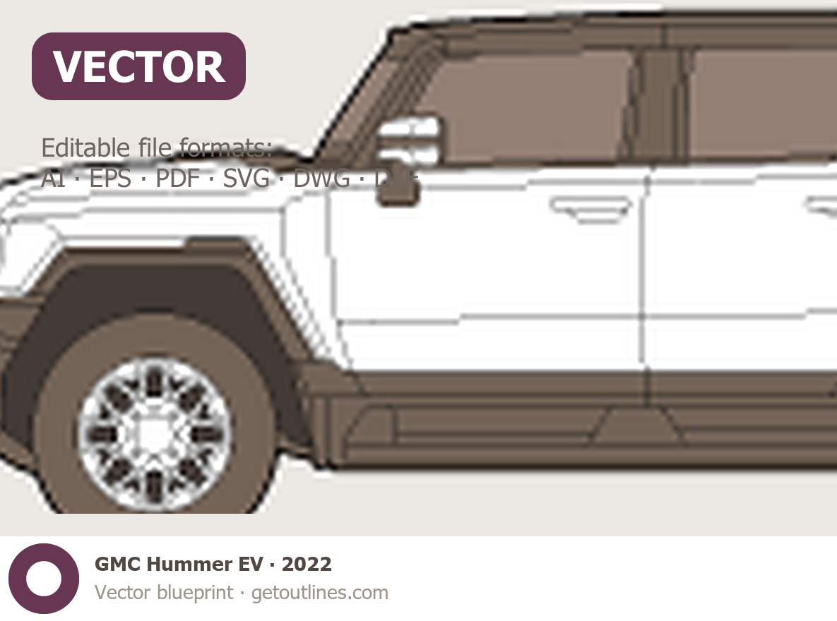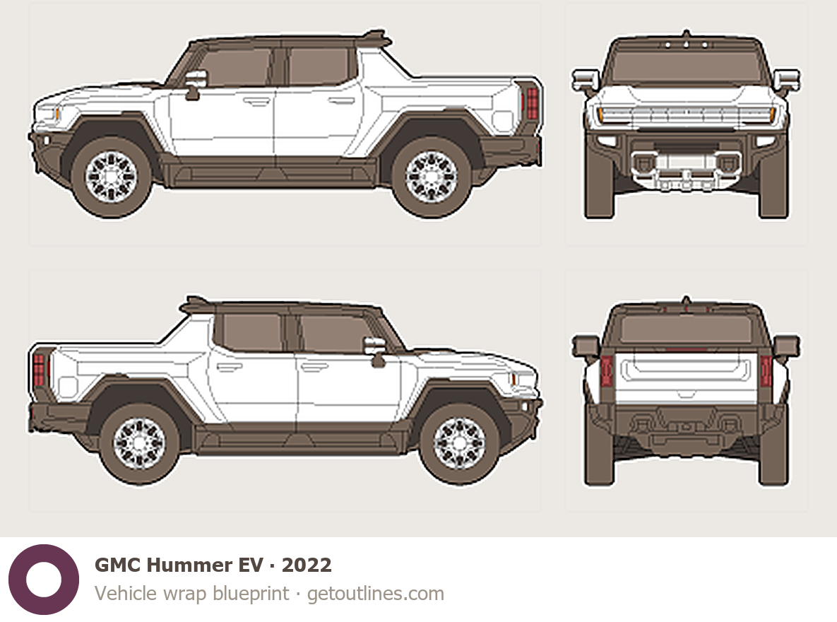 Buy this GMC Hummer EV blueprint and line drawing in high-quality editable vector file formats. Best for 3D and car wrap design.