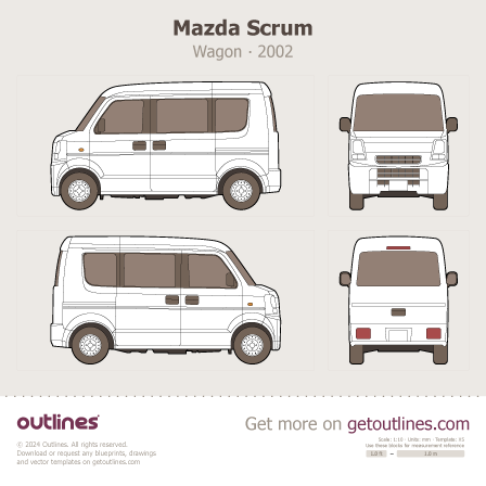 Buy this Mazda Scrum 4 Gen ∙ DG64 ∙ IV blueprint and line drawing in high-quality editable vector file formats. Best for 3D and car wrap design.