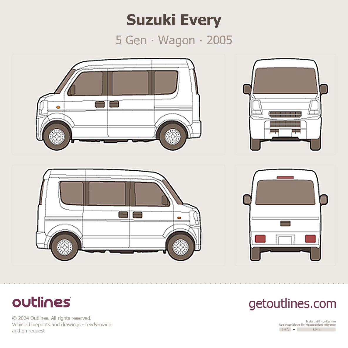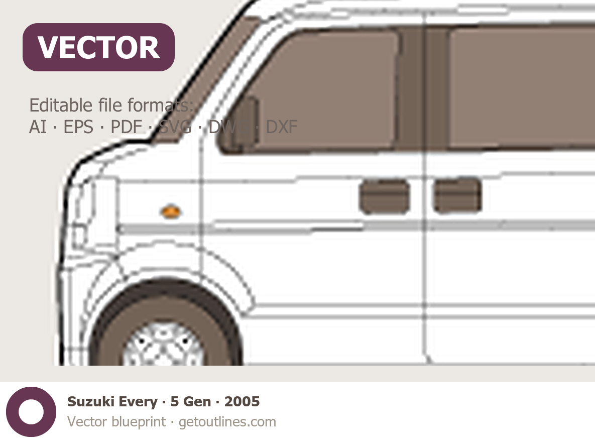 This 2005 Suzuki Every 5 Gen Wagon blueprint helps designers, wrap studios, and 3D artists simplify their workflow and save valuable time for creative work instead of routine tasks.