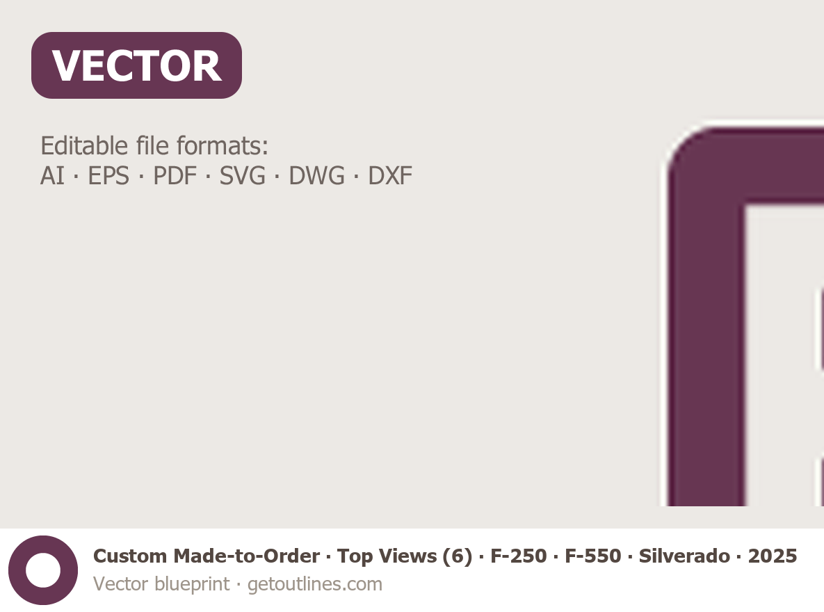 Buy this Custom Made-to-Order Top Views (6) blueprint and line drawing in high-quality editable vector file formats. Best for 3D and car wrap design.