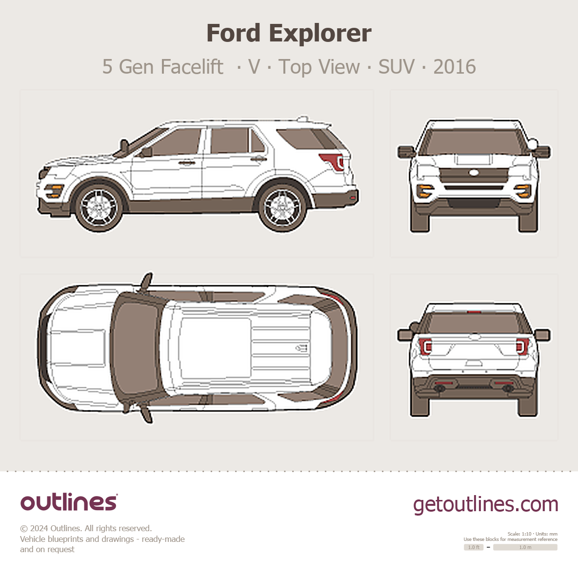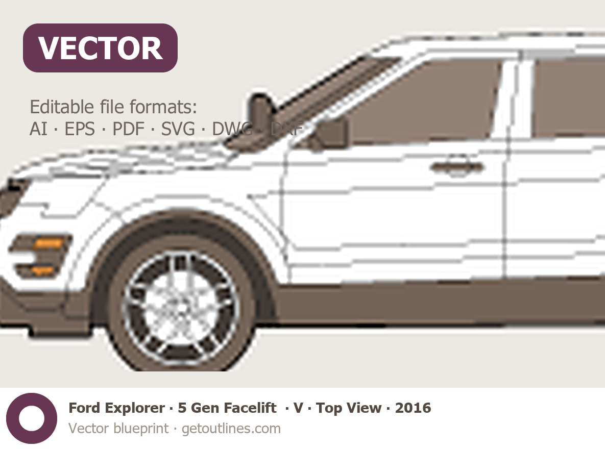 Buy this Ford Explorer 5 Gen Facelift ∙ V blueprint and line drawing in high-quality editable vector file formats. Best for 3D and car wrap design.