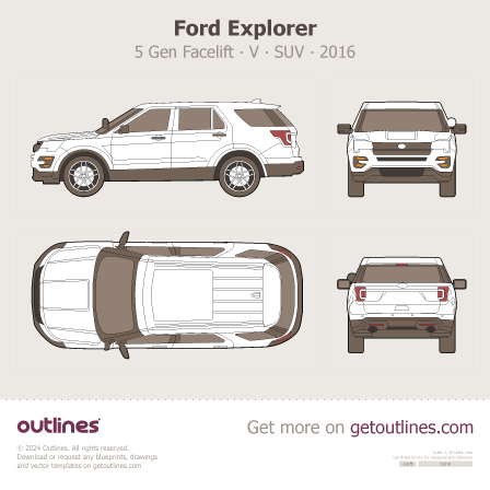 Buy this Ford Explorer 5 Gen Facelift ∙ V blueprint and line drawing in high-quality editable vector file formats. Best for 3D and car wrap design.