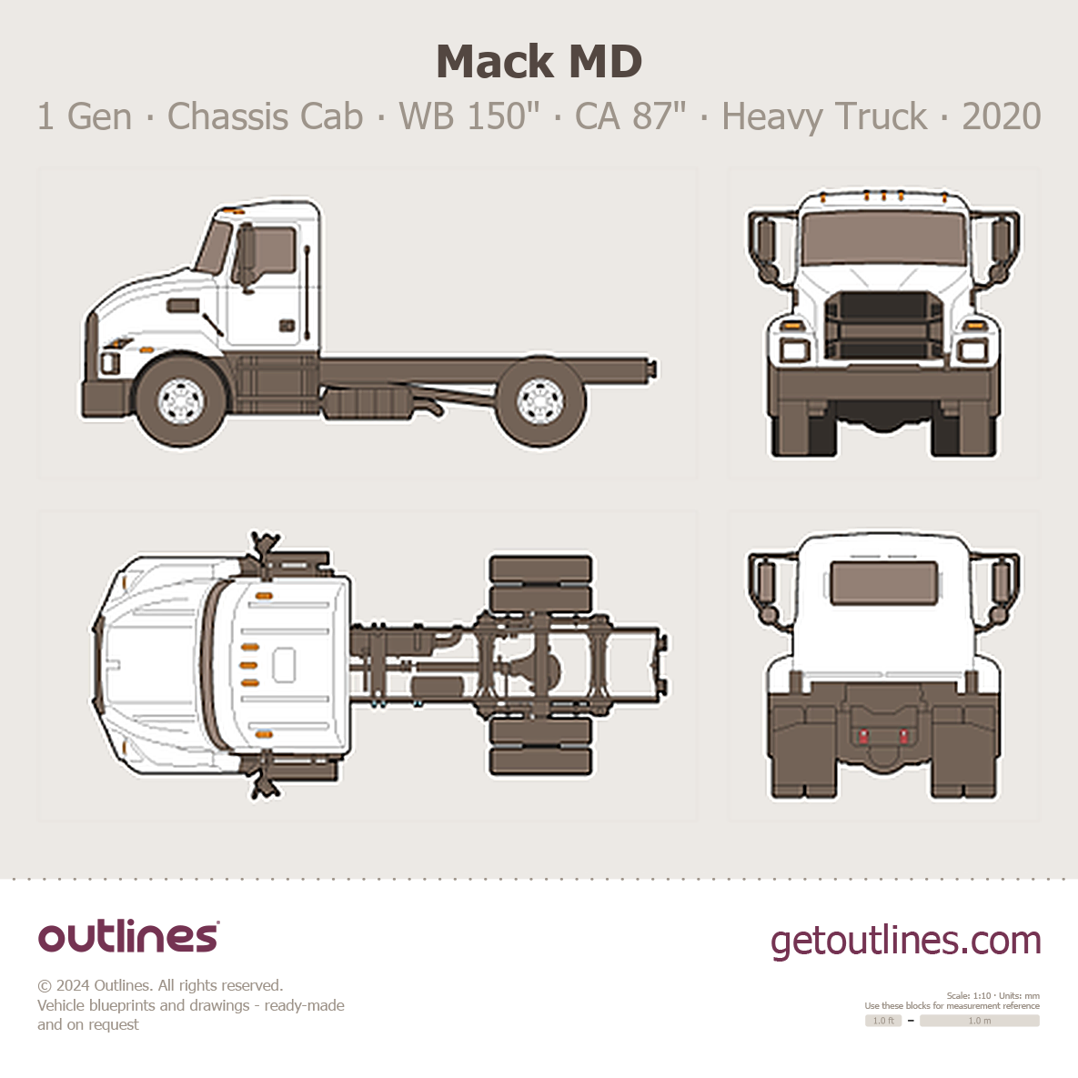 This is a blueprint of the MD, produced by carmaker Mack in 2020 - 2025. It features a Heavy Truck body design and is classified as a Commercial vehicle.