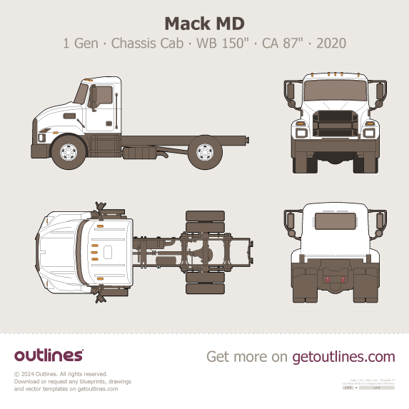 Buy this Mack MD 1 Gen blueprint and line drawing in high-quality editable vector file formats. Best for 3D and car wrap design.