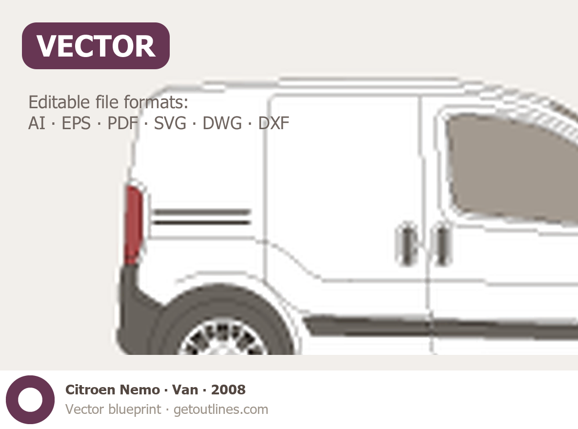 Buy this Citroen Nemo Van blueprint and line drawing in high-quality editable vector file formats. Best for 3D and car wrap design.