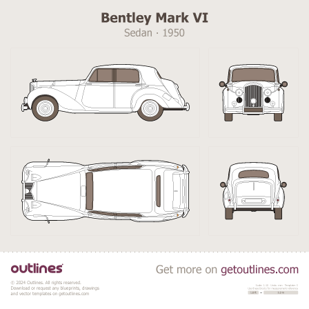 Buy this Bentley Mark VI blueprint and line drawing in high-quality editable vector file formats. Best for 3D and car wrap design.