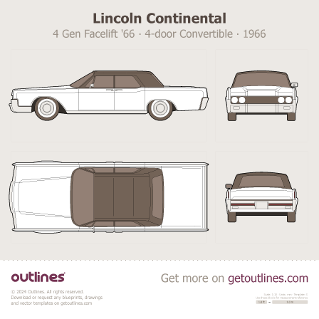 Buy this Lincoln Continental 4 Gen Facelift '66 blueprint and line drawing in high-quality editable vector file formats. Best for 3D and car wrap design.