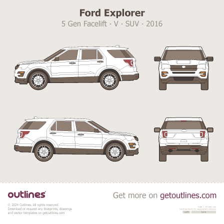 Buy this Ford Explorer 5 Gen Facelift ∙ V blueprint and line drawing in high-quality editable vector file formats. Best for 3D and car wrap design.