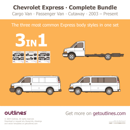 This 2020 Chevrolet Express 4500 3 in 1 Bundle ∙ User’s Choice ∙ $59 instead of $72 Including Cargo Van, Passenger Van, and Cutaway Van blueprint helps designers, wrap studios, and 3D artists simplify their workflow and save valuable time for creative work instead of routine tasks.