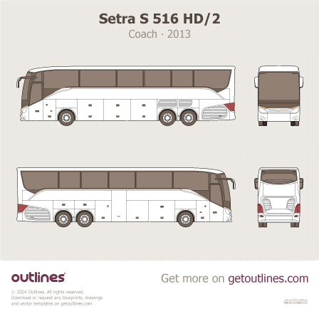 This is a blueprint of the S 516, produced by carmaker Setra in 2013 - Present (2025, 2026). It features a Bus body design and is classified as a Commercial vehicle.