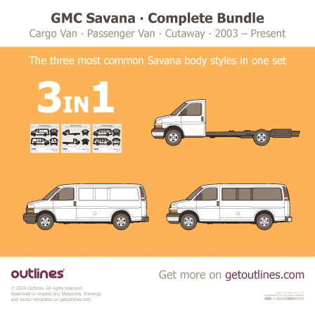 This 2020 GMC Savana 2500 3 in 1 Bundle ∙ User’s Choice ∙ $59 instead of $72 Including Cargo Van, Passenger Van, and Cutaway Van blueprint helps designers, wrap studios, and 3D artists simplify their workflow and save valuable time for creative work instead of routine tasks.