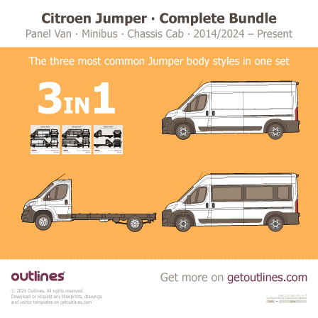 Buy this Citroen Jumper 3 in 1 Bundle ∙ $59 instead of $72 blueprint and line drawing in high-quality editable vector file formats. Best for 3D and car wrap design.