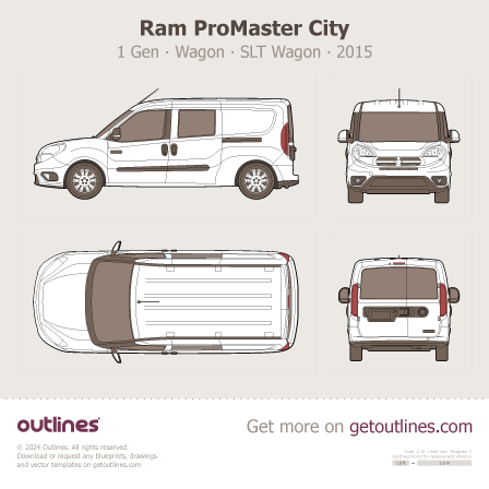 Buy this Ram ProMaster City 1 Gen blueprint and line drawing in high-quality editable vector file formats. Best for 3D and car wrap design.