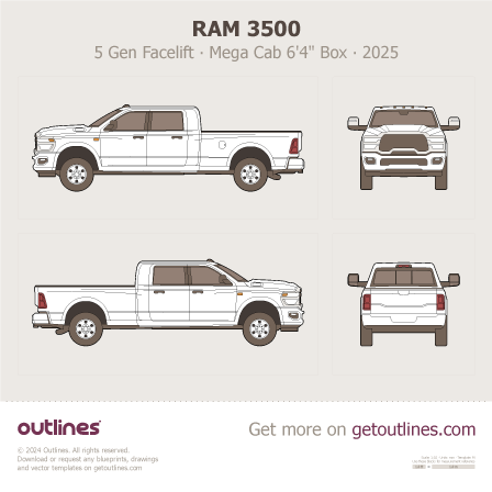 2025 Ram 3500 5 Gen Facelift ∙ Heavy Duty ∙ HD Mega Cab 6'4" Box Pickup Truck blueprint