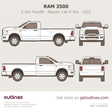 2025 Ram 3500 5 Gen Facelift ∙ Heavy Duty ∙ HD Regular Cab 8' Box Pickup Truck blueprint