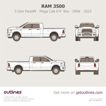 2025 Ram 3500 5 Gen Facelift ∙ Heavy Duty ∙ HD Mega Cab 6'4" Box ∙ DRW Pickup Truck blueprint