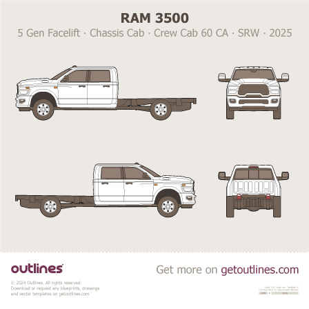 2025 Ram 3500 5 Gen Facelift ∙ Heavy Duty ∙ HD Chassis Cab ∙ Crew Cab 60 CA ∙ SRW Pickup Truck blueprint