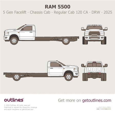 Buy this Ram 5500 5 Gen Facelift ∙ Heavy Duty ∙ HD blueprint and line drawing in high-quality editable vector file formats. Best for 3D and car wrap design.