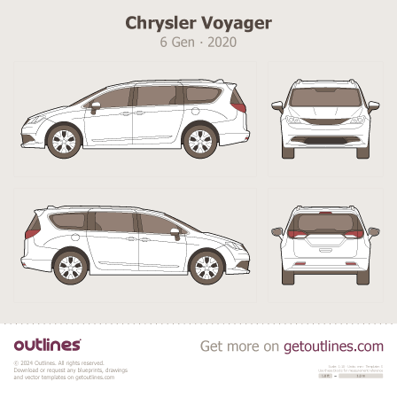 This is a blueprint of the Voyager, produced by carmaker Chrysler in 2020 - 2026. It features a Minivan body design and is classified as a Commercial vehicle.