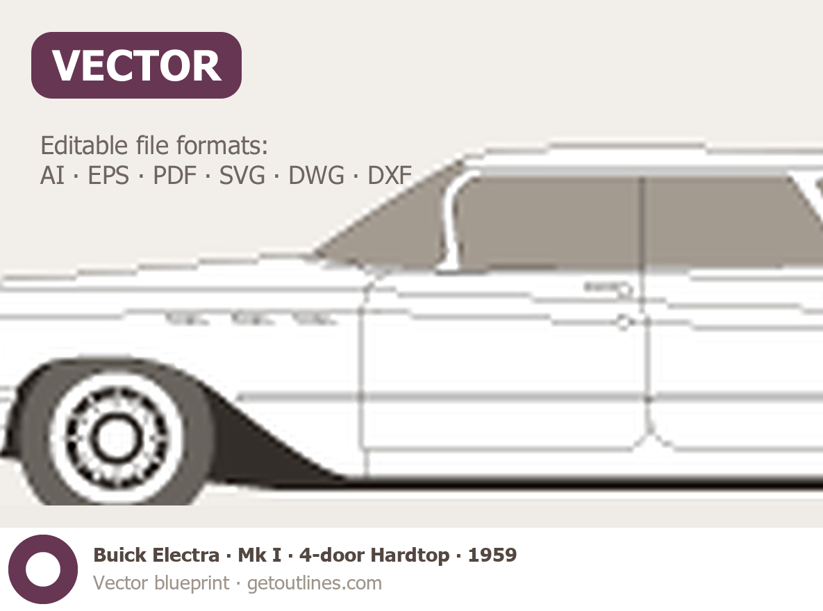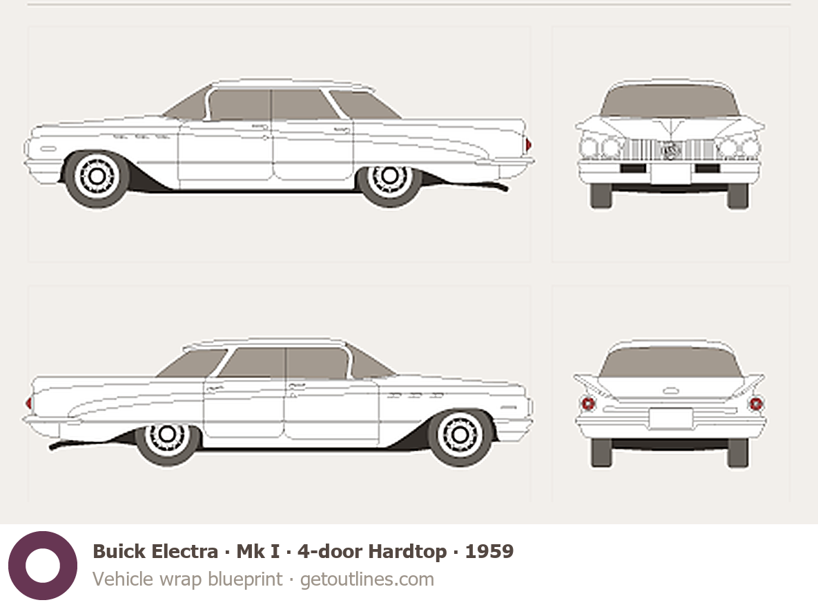 Buy this Buick Electra Mk I blueprint and line drawing in high-quality editable vector file formats. Best for 3D and car wrap design.
