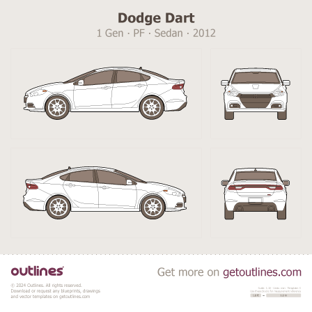 This 2012 Fiat Viaggio [Legacy] PF cn Sedan blueprint helps designers, wrap studios, and 3D artists simplify their workflow and save valuable time for creative work instead of routine tasks.