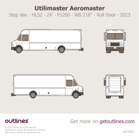 Buy this Utilimaster Aeromaster Step Van ∙ HLS2 blueprint and line drawing in high-quality editable vector file formats. Best for 3D and car wrap design.