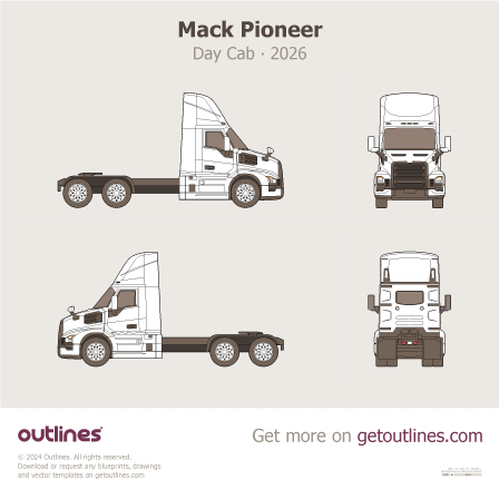 Buy this Mack Pioneer blueprint and line drawing in high-quality editable vector file formats. Best for 3D and car wrap design.