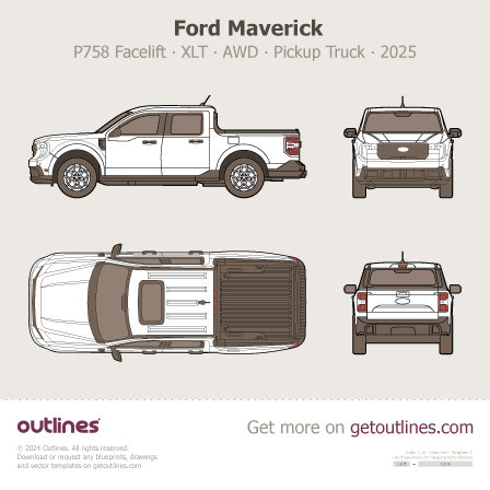 Buy this Ford Maverick P758 Facelift blueprint and line drawing in high-quality editable vector file formats. Best for 3D and car wrap design.