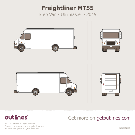 This is a blueprint of the MT55, produced by carmaker Freightliner in 2019 - 2026. It features a Van body design and is classified as a Commercial vehicle.