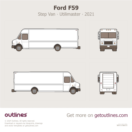 This is a blueprint of the F59, produced by carmaker Ford in 2021 - 2026. It features a Van body design and is classified as a Commercial vehicle.
