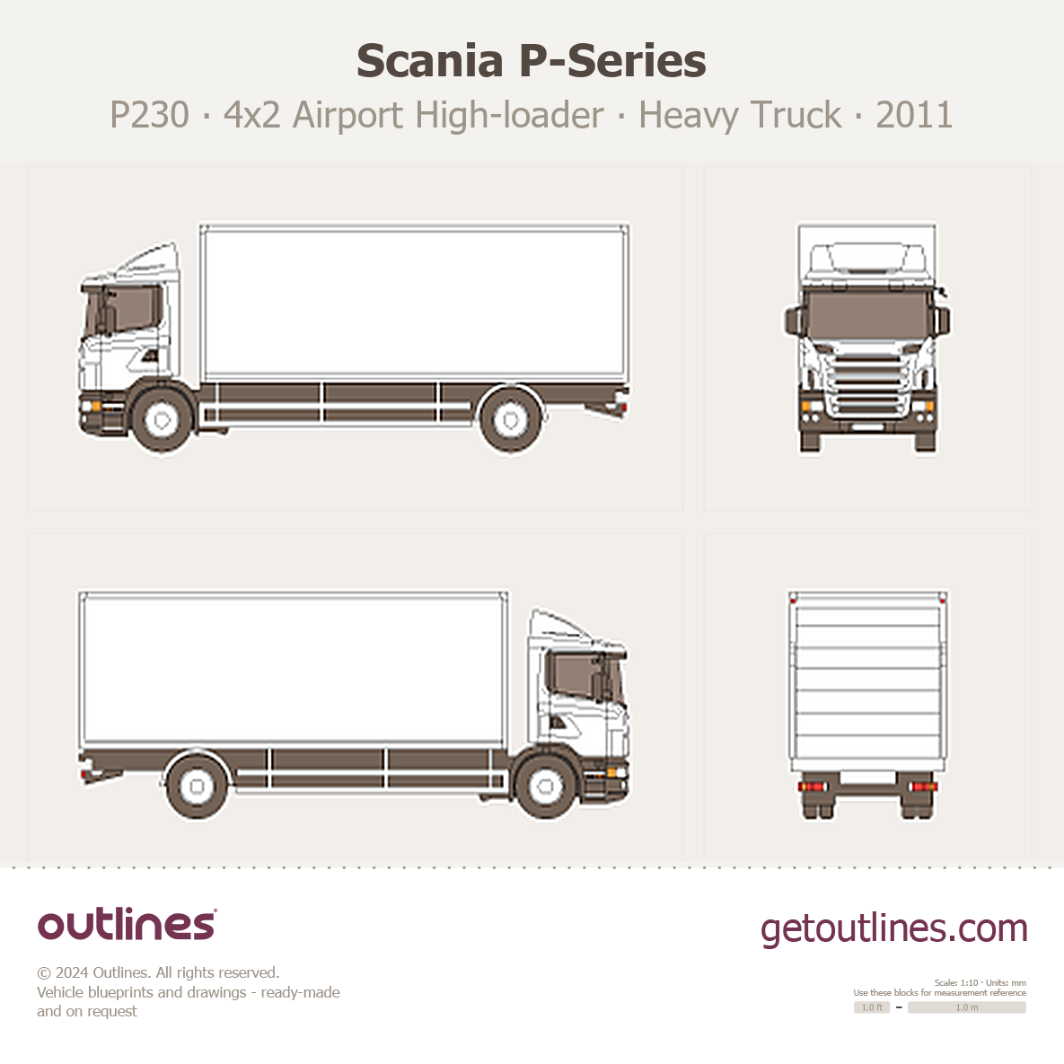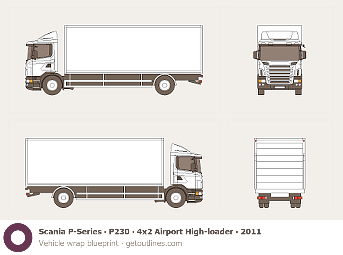 This 2011 Scania P-Series P230 4x2 Airport High-loader Heavy Truck blueprint helps designers, wrap studios, and 3D artists simplify their workflow and save valuable time for creative work instead of routine tasks.