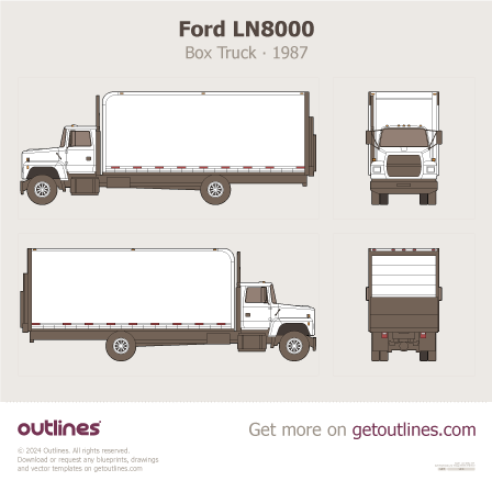 This 1987 Ford LN7000 Facelift Box Truck Heavy Truck blueprint helps designers, wrap studios, and 3D artists simplify their workflow and save valuable time for creative work instead of routine tasks.