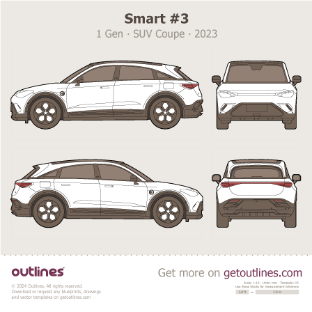 Buy this Smart 3 blueprint and line drawing in high-quality editable vector file formats. Best for 3D and car wrap design.