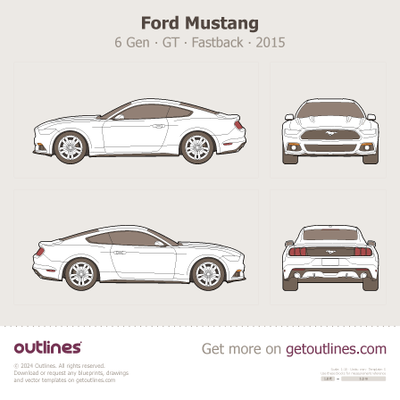 Buy this Ford Mustang [Legacy] 6 Gen blueprint and line drawing in high-quality editable vector file formats. Best for 3D and car wrap design.