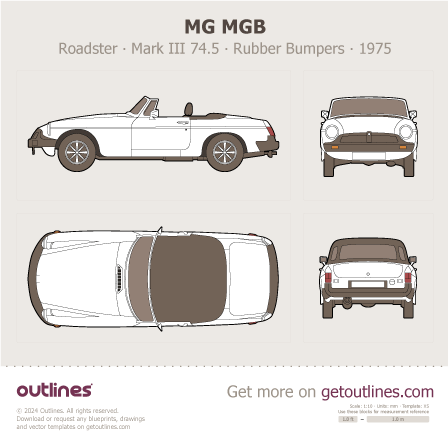 Buy this MG MGB Roadster ∙ Mark III blueprint and line drawing in high-quality editable vector file formats. Best for 3D and car wrap design.